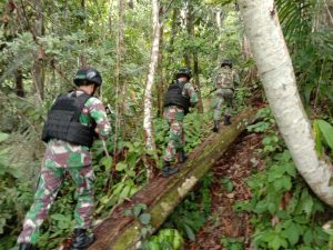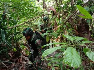PAPUA, skalainfo.net | Satgas Pamtas Yonif Raider 300/Bjw, Pos Sawiyatami yang dipimpin oleh Serda Aditya Panggih beserta 7 orang melaksanakan Patroli keamanan di wilayah hutan Kampung Sawiyatami, Distrik Arso.