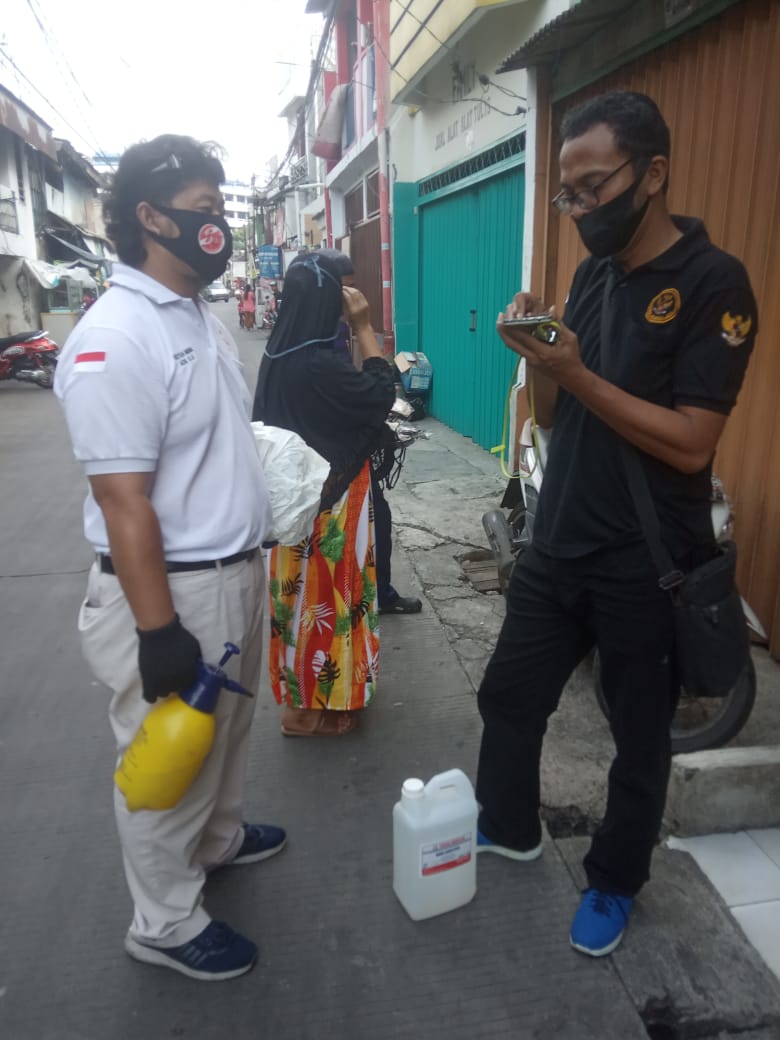 Jakarta, skalainfo.net | Wujud peduli aksi GiJ (Garuda Indonesia Jaya ) Bersama GRPB (Gerakan Rakyat Peduli Bangsa) melakukan penyemprotan Disinfektan pembagian masker dan Hand sanitizer Di wilayah Jakarta barat Daerah zona merah Covid 19 jalan kota Bambu Utara 1 Kelurahan Kota Bambu Utara Kecamatan Palmerah, ( 17/05/2020)