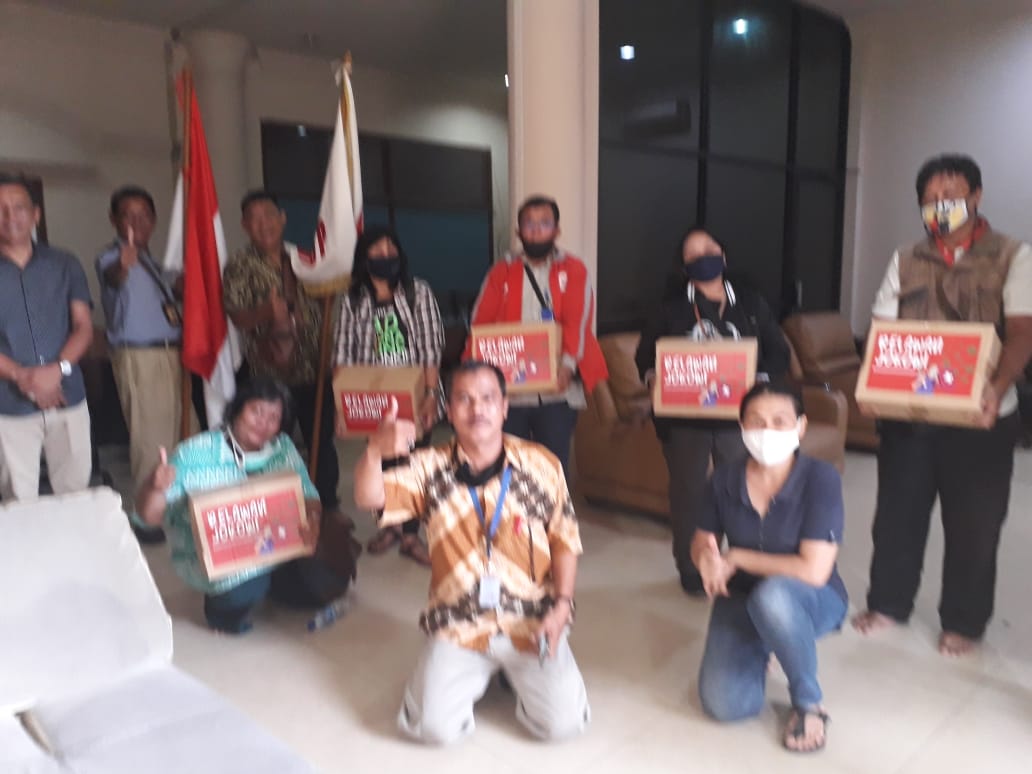 Jakarta, skalainfo.net | Dalam rangka mendukung program pemerintah membantu masyarakat yang terdampak Covid-19, Barisan Relawan Jokowi Presiden (Bara JP) secara kontinyu menyerahkan sejumlah paket sembako kepada masyarakat. Hari ini 20 Mei 2020, Bara JP membagikan puluhan paket sembako kepada sejumlah jurnalis yang juga ikut terdampak Covid-19.