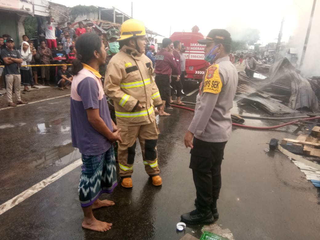 Anggota Polsek Pakuhaji Mendatangi TKP sebayak ± 10 personil pimpinan Kapolsek Pakuhaji AKP Dr. Edy Suprayitno, SH, MH, Mengkoordinir warga agar ikut membantu pemadaman api sebelum Dinas Damkar tiba di lokasi (TKP).Menghubungi Unit Damkar Kecamatan. Pakuhaji dan Kecamatan. Sepatan.