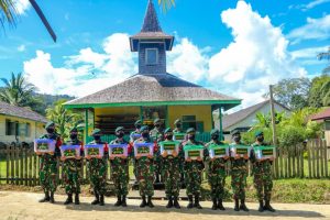 MAHULU, skalainfo.net | Dansatgas Yonif Raider 200/Bhakti Negara (BN) Mayor Inf Andy Irawan, SH menyerahkan bingkisan lebaran dari Panglima TNI dan Kepala Staf Angkatan Darat (Kasad) untuk