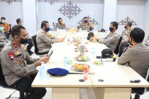Dalam kunjungan ini Kabid Dokkes Polda Jatim Kombes Pol dr Hisbulloh Huda Sp. Pd, memberikan gambaran situasi Jawa Timur terkait Covid-19 dengan membentuk Satgas Pencegahan, satgas pelayanan kesehatan dan satgas rehabilitasi serta dibentuk Posko Covid-19 untuk kesiapan RS Bhayangkara yang dilibatkan dalam penanganan Covid-19 demikian pula kesiapan sarana prasarana yang ada di 12 Rumah sakit Polri dan layanan kesehatan yang ada di seluruh jajaran Polda Jatim,