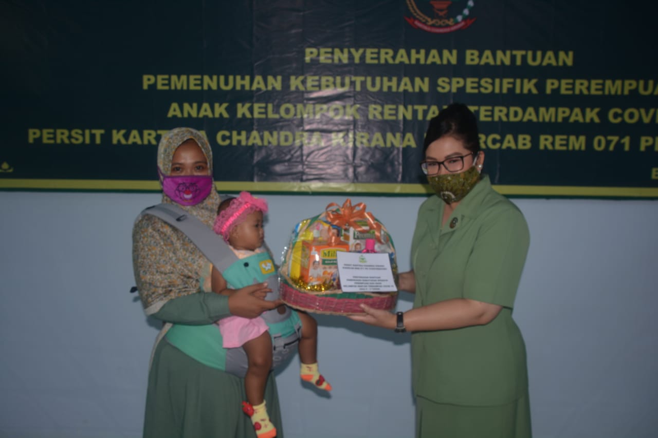 “Pemberian bantuan ini merupakan bentuk perhatian Persit Kartika Chandra Kirana Koorcab Rem 071 PD IV/Diponegoro dalam turut serta membantu meringankan beban kelompok rentan khususnya para perempuan dan anak yang terdampak Covid-19”, terang Ny. Anita.