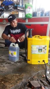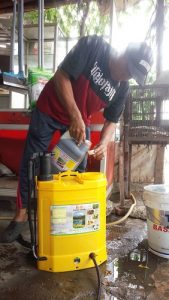 “Untuk hari ini khusus wilayah RT. 003/02 akan menyemprotkan disfektan B. 8 Bio Teknologi Indonesia ke setiap ruang kosong dan pojok-pojok rumah warga. Dengan itu pun warga sudah merasa senang, karena merasa dapat perhatian dari tingkat wilayah RT. Semoga upaya memutus atau memotong mata rantai virus corona ini cepat hilang dari kampung kita”.