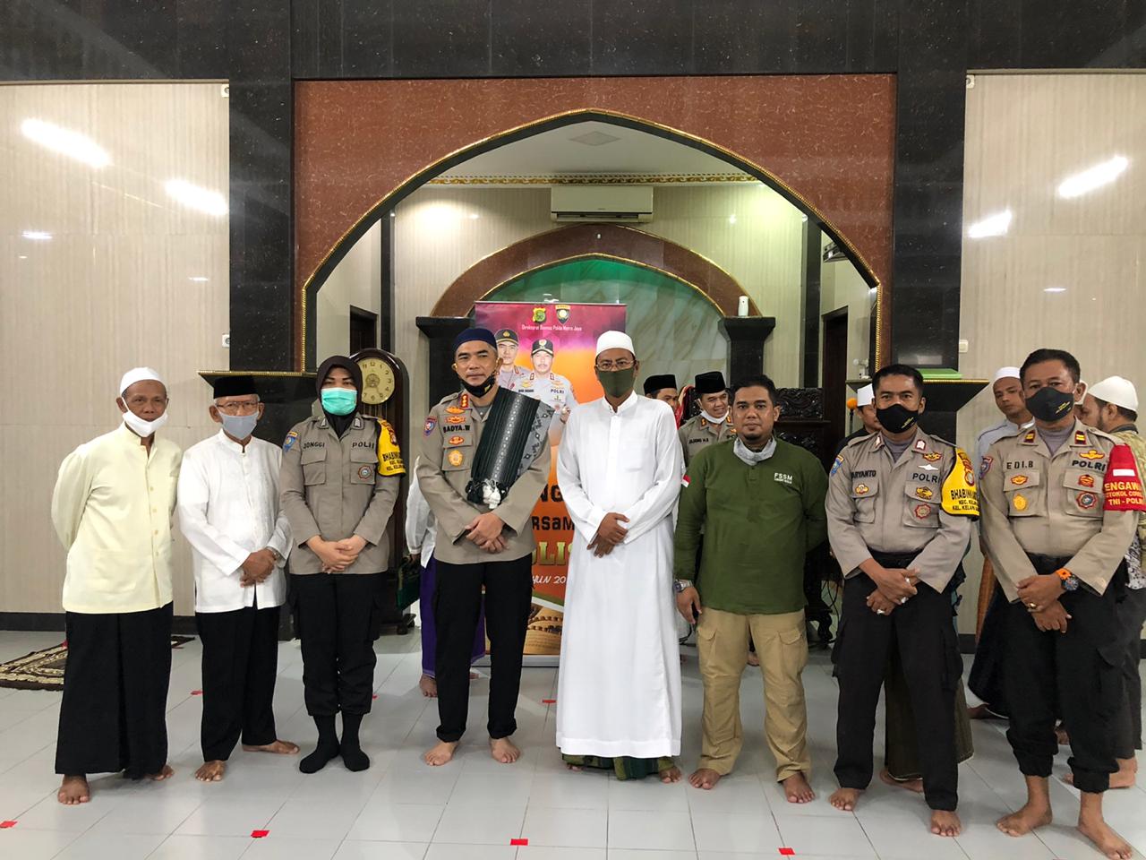 Implementasi Polmas kesetaraan tidak ada jarak antar Polri dengan masyarakat, dan Ucapan terima kasih Mesjid Jami’ Al-Amin telah melaksanakan Protokol kesehatan.
