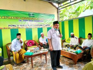 “Alhamdulillah, ditengah tengah kita kembali hadir, Keluarga Besar Nahdlatul Ulama (NU) yang kini menjabat sebagai salah satu Mustasyar PWNU Lampung Bapak H. Tony Eka Candra (TEC), yang akan maju menjadi Calon Bupati Lampung Selatan 2020 mendatang. Sebagai Keluarga Besar NU tentunya kita patut bangga dan senantiasa bersyukur, bahwa ini adalah kewajiban kita semua untuk mendo’akan dan mendukung beliau (Tony. red) agar terpilih dan menjadi Bupati Lampung Selatan Periode 2021-2026 dalam rangka menjadikan Kabupaten Lampung Selatan sebagai Kabupaten yang maju, makmur dan sejahtera,” ucap KH. Nur Mahfudz.