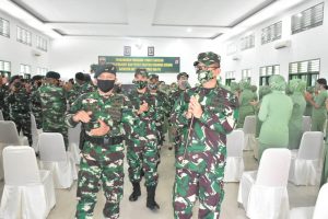 Binjai, skalainfo.net | Pangdam I/BB Mayjen TNI Irwansyah, MA, MSc., dan Ketua Persit KCK PD I/BB Ny. Neneng Irwansyah melaksanakan kunjungan kerja (Kunker) ke Yonif Raider 100/PS Jl. Binjai – Namu Sira-sira pada Rabu, (8/7/2020)
