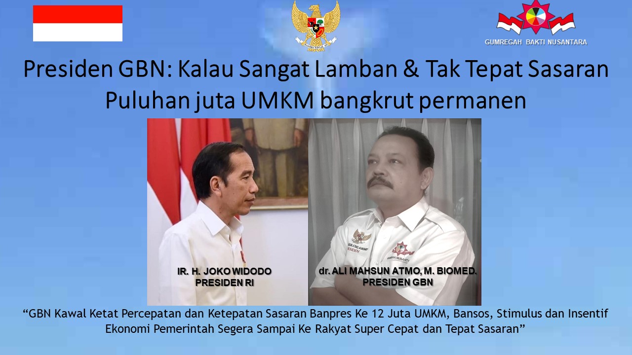 Jakarta, skalainfo.net | “Kami sampaikan terima kasih kepada Presiden Jokowi atas BANPRES untuk 12 Juta UMKM, GBN Kawal Ketat Percepatan dan Ketepatan Sasaran Bansos, Stimulus dan Insentif EKonomi Pemerintah Agar Super Cepat dan Tepat Sasaran Sampai ke Rakyat”
