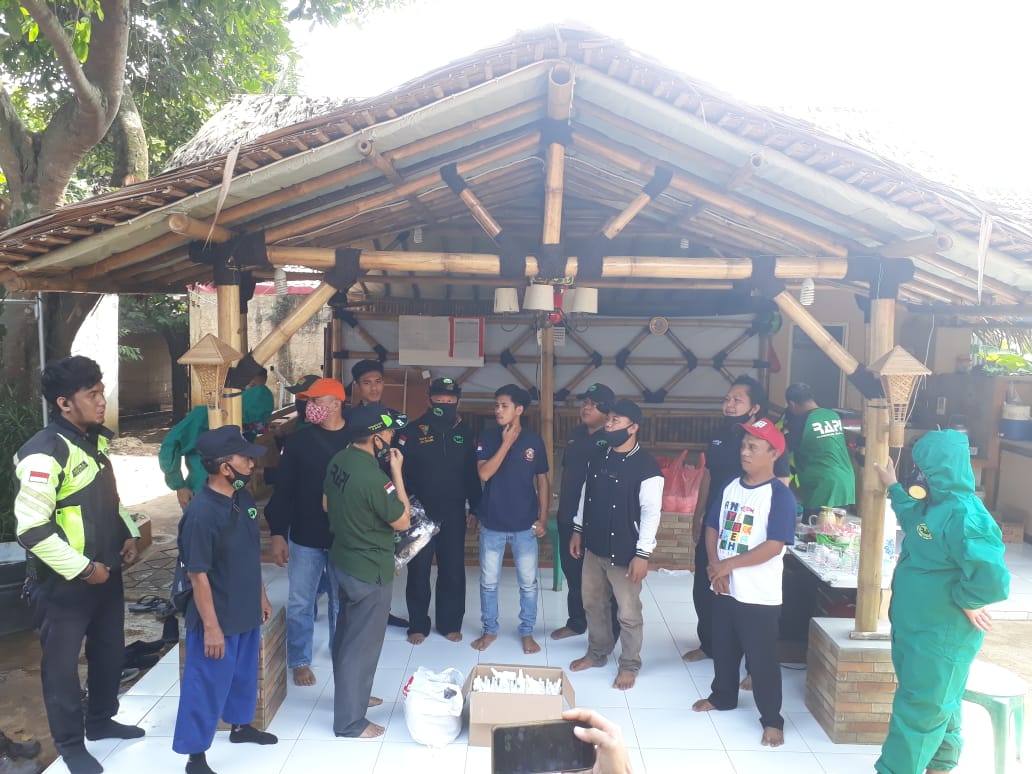 Tangsel, skalainfo.net | Radio Antar Penduduk Indonesia (RAPI) Kota Tangerang Selatan 3008 kembali lakukan bakti sosial berupa pembagian masker, penyemprotan disinfektan, dan juga membagikan hand sanitizer kepada warga Rawa Macek, RW : 03 kelurahan Ciater, Serpong, Tangsel.
