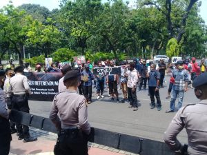 “Otonomi Khusus Papua yang akan selesai di bulan November tahun 2021 mendatang. Dan itu, sejak sekarang sudah dijadikan polemik,” ujar salah seorang mahasiswa Papua yang melakukan orasi.