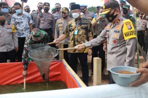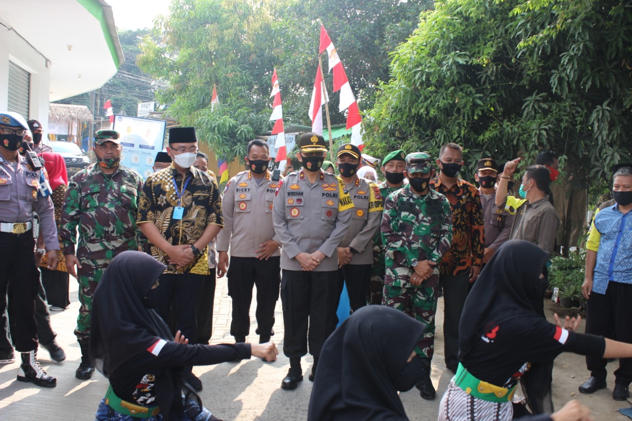 SERANG, skalainfo.net | Wakapolda Banten Brigjen Pol Wirdhan Denny bersama Wakil Gubernur Banten Andika Hazrumy, Dirbinmas Polda Banten Kombes Pol Riki Yanuarfi, Kasiter Korem 064/MY Kolonel A. Jamali, Dandim 0602/ Serang Kolonel Inf. Soerhardono, Wakil Bupati Sedang Panji Tirtayasa dan Kapolres Serang AKBP Mariyono dan unsur lainnya mengunjungi Kampung Tangguh Nusantara Kalimaya yang berada di Kp. Pelawad Kidul Desa Pelawad Kecamatan Ciruas Kabupaten Serang, Kamis (13/08/2020).