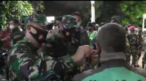 Selama patroli TNI bersama POLRI menyerukan dan mengajak masyarakat bersama-sama melawan Covid-19 dengan mematuhi protokol kesehatan terutama harus memakai masker. Pada kegiatan ini Dandim dan Kapolres juga berkesempatan membagikan sejumlah masker kepada warga masyarakat disekitar di taman Barito Kebayoran Baru Jakarta Selatan. (Red/Team).