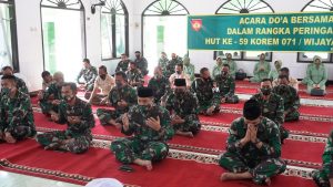 Selain itu, Danrem juga mengatakan kegiatan Do’a Bersama yang diselenggarakan ini merupakan moment yang sangat tepat untuk merenung dan bermuhasabah atas segala pengabdian yang telah dilakukan selama ini. Segenap prajurit, PNS serta keluarga besar Korem 071/Wijayakusuma.