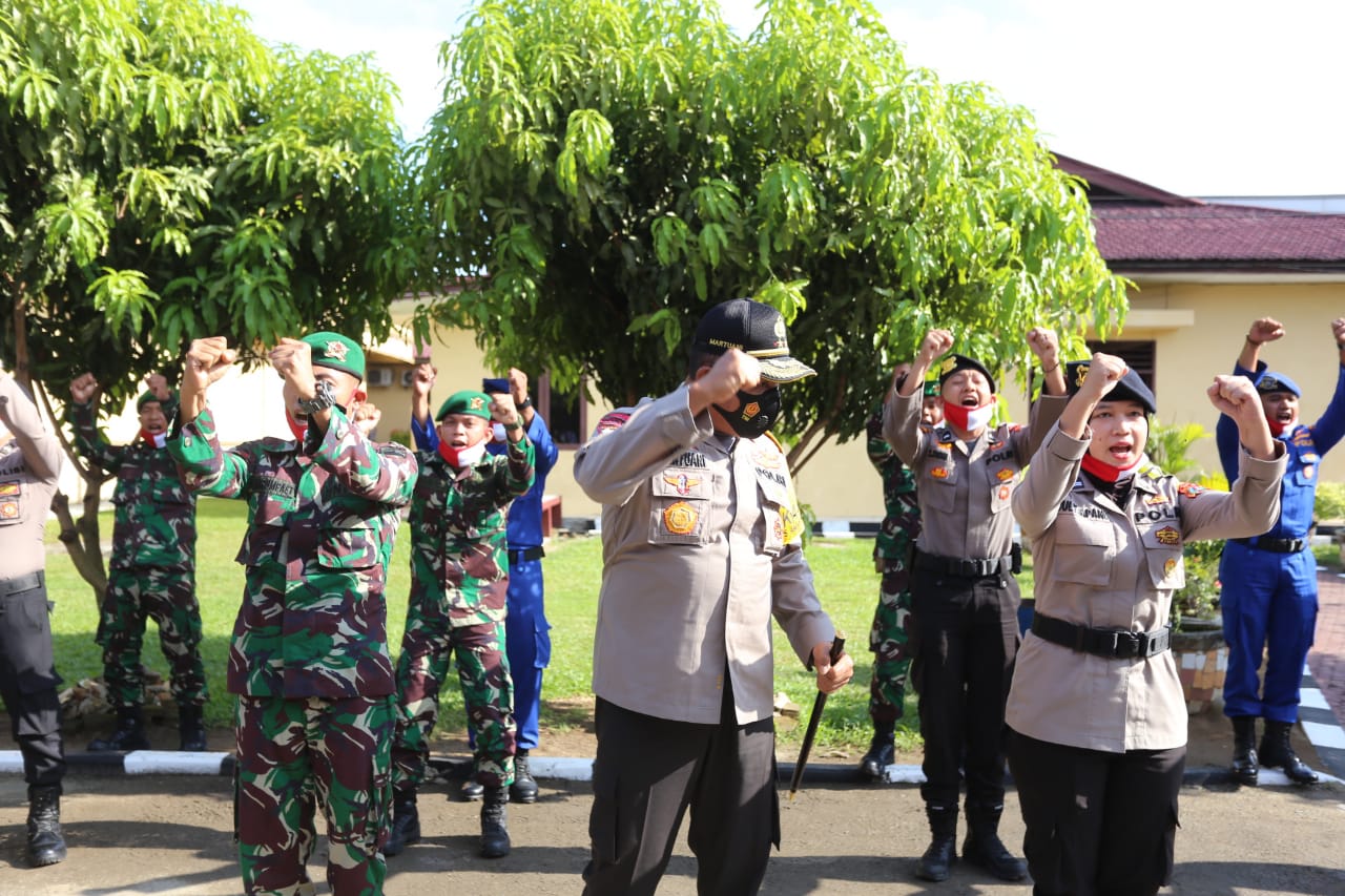Dengan penuh semangat, para personil Kodim 0209/LB dan Polres menyambut Kapoldasu dengan menyanyikan yel-yel TNI-Polri. Penyambutan ini sengaha dilakukan sebagai bentuk sinergitas antara TNI dan Polri.