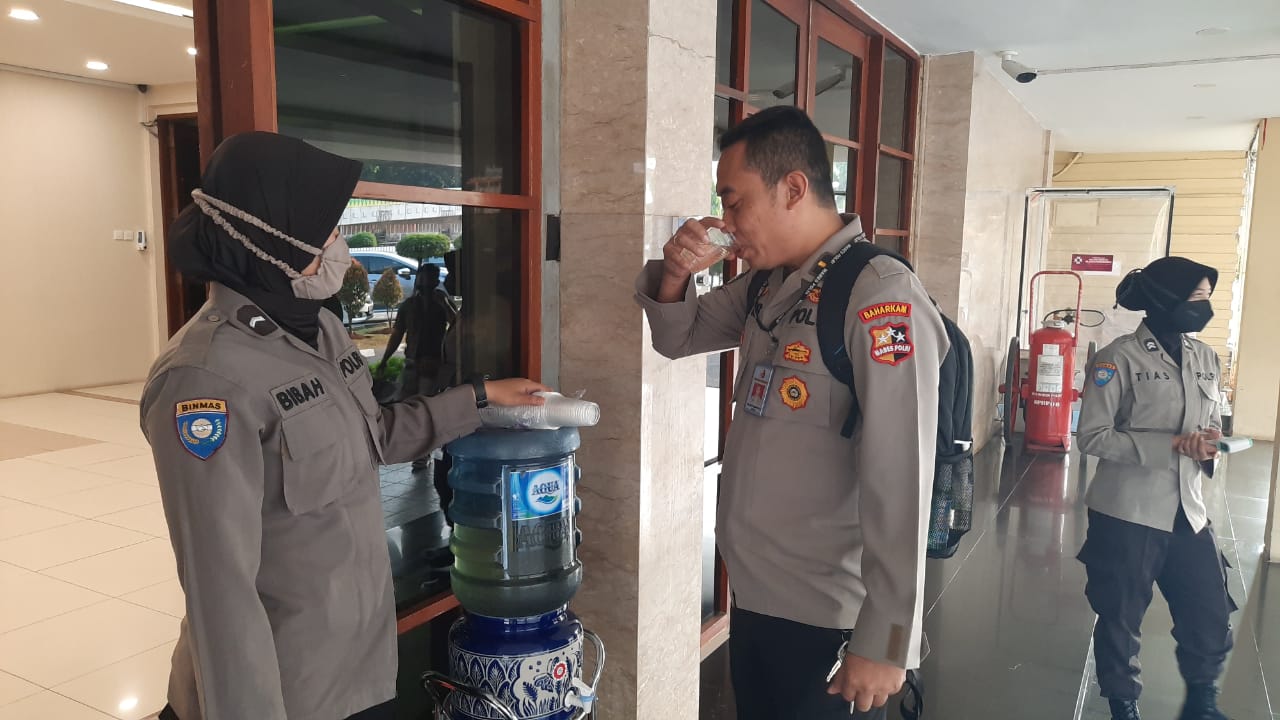 Hari ini Selasa (8/9/2020), terlihat di lobby utama gedung Baharkam Polri disediakan 2 buah dispenser air berisi cairan probiotik dan madu yang disediakan untuk seluruh personil Baharkam Polri.