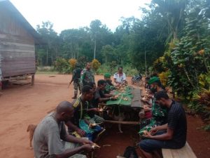 Merauke, Skalainfo.net| Berbagai kreasi dan inovasi dilakukan Prajurit Satgas Pamtas RI-PNG Yonif 125/Simbisa agar semakin dekat dan kompak dengan warga perbatasan, seperti yang dilakukan anggota Pos Bupul 12 mengajarkan warga cara membuat ketupat dan menikmatinya bersama.