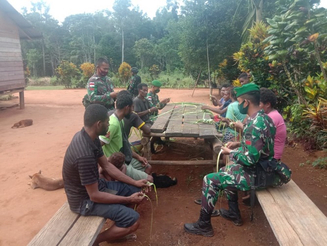 Dijelaskan Dansatgas, anjangsana yang dilakukan lima orang personel Satgas dari Pos Bupul 12 dipimpin Sertu Royen dengan cara mengajak dan mengajari pembuatan ketupat dan menyantapnya bersama-sama dengan warga Kampung Baidub, Distrik Ulilin, Kabupaten Merauke.