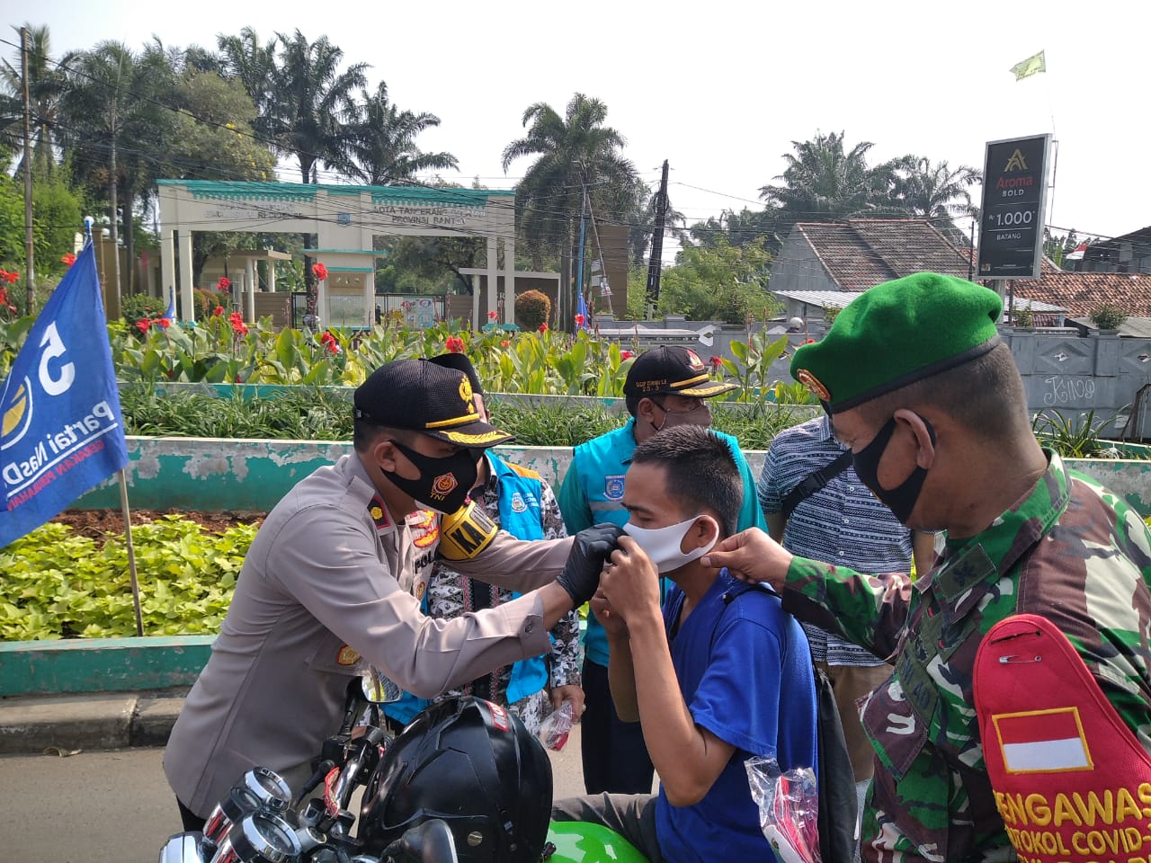 Kompol Endy Mahadika SH ( Kapolsek Ciputat) dalam kata sambutan kegiatan hari ini merupakan lanjutan pembagian masker 2 hari yang lalu ,dan hari ini di bagikan 10,000 masker di bundaran maruga , semoga dengan ini pembagian masker ini dapat mencegah penyebaran Covid 19,