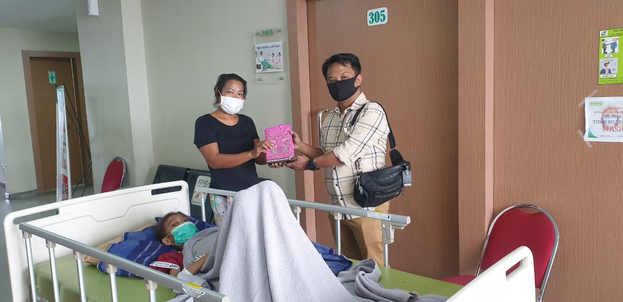“Saya semalam di Whatsapp bapak, untuk ngasih bantuan kepada adik Nayla”, ujar Abink saat menyerahkan bantuan Kabaharkam Polri di Rumah Sakit Mitra Medika Bandar Khalifa Senin (21/9/2020).