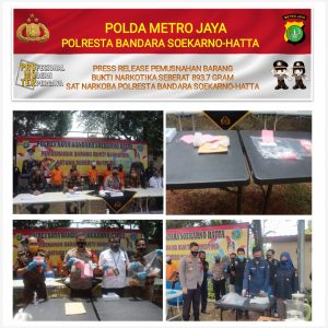 Tangerang, skalainfo.net | Polresta Bandara Soekarno-Hatta memusnahkan 893,7 Gram sabu-sabu yang merupakan barang bukti kejahatan penyalahgunaan narkotika di wilayah Bandara Soekarno-Hatta.