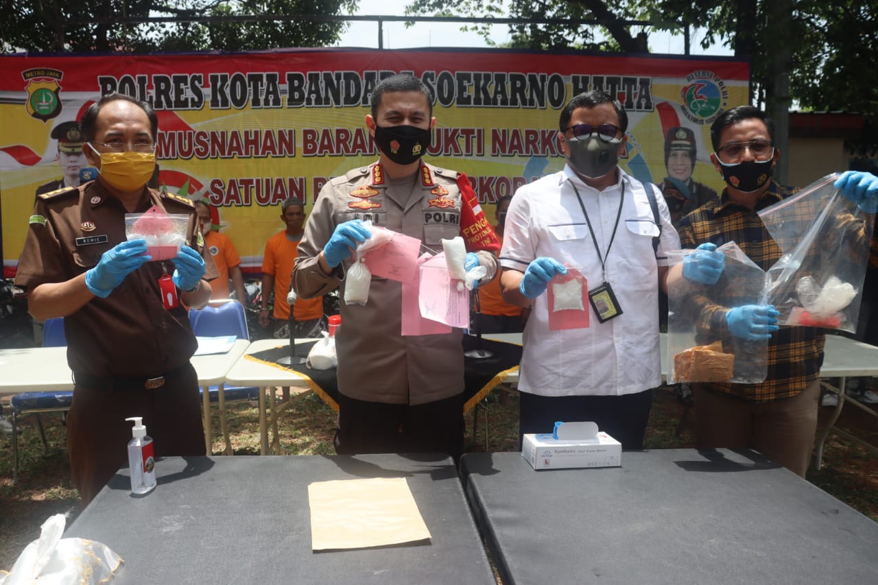 Kapolresta Bandara Soekarno-Hatta Kombes Pol Adi Ferdian Saputra mengatakan, barang bukti yang dimusnahkan berasal dari beberapa kasus narkoba.