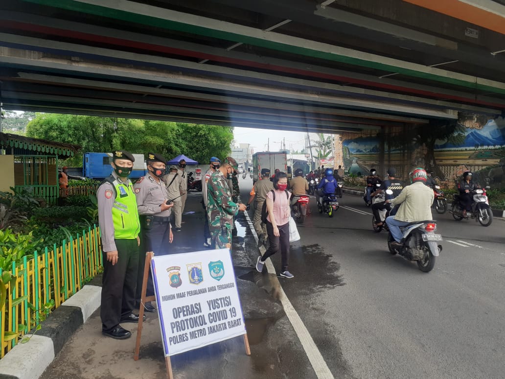 Usai apel digelar patroli pendisiplinan protokol kesehatan COVID-19 dilaksanakan di tiga lokasi antaranya di sekitaran CNI, Lapangan Kiamat dan Jalan Meruya Selatan.