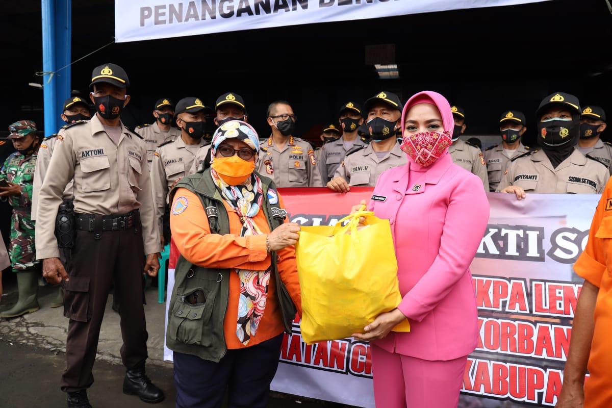 BANDUNG, skalainfo.net | Pasca bencana banjir bandang yang menerjang wilayah Kecamatan Cicurug, Kabupaten Sukabumi pada 21 September 2020 petang, maka pada Selasa siang 21 September 2020, Ketua Bhayangkari Cabang 04 Setukpa Ny. Tasha Mardiaz dan Wakil Ketua Ny. Subedah Adam Eko bersama dengan Perwakilan Pengurus Cabang Bhayangkari 04 Setukpa, mendampingi rombongan Setukpa Lemdiklat Polri yang dipimpin oleh Kepala Sektukpa Brigjen Pol. Mardiaz Kusin Dwihananto melakukan bakti sosial dengan menjenguk korban banjir bandang.