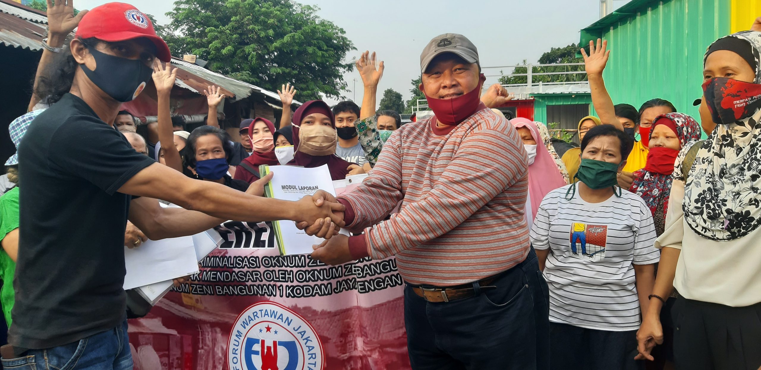 Untuk itu atas nama kuasa penyelesaian perkara yang dibuat oleh pengurus Paguyuban Pedagang Kreatif di Jl, Beringin Raya RT 001/011, Kelurahan Gedong, Kecamatan Pasar Rebo, Kota Jakarta Timur, Forum Wartawan Jakarta (FWJ) menyayangkan adanya perlakuan intimidasi, kriminalisasi dan perlakuan semena-mena dari oknum Zeni Bangunan-1 Kodam Jaya/Jayakarta terhadap para pedagang kaki lima untuk dlakukannya penggusuran atau merobohkan kios-kiosnya sendiri tanpa dasar.