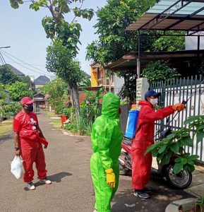 Dalam giat Bhakti Sosial PAC, PR, dan PAR PDI Perjuangan Cipayung, Jakarta Timur melaksanakan giat dengan cara penyemprotan Disinfektan ke wilayah RT.007/ RW.06 dan di RT.008/ RW.06, Kelurahan Cipayung, Jakarta Timur yang di dampingi ketua RT.007/ RW.06, Simon Wattilah dan ketua RT.008/ RW.06, Maja.