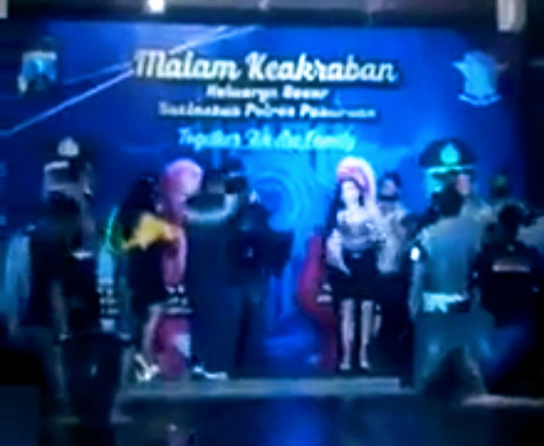 Dalam video berdurasi 53 detik itu, terlihat beberapa anggota kepolisian tengah asyik berjoged mengikuti irama lagu dangdut yang dibawakan dua penyanyi.