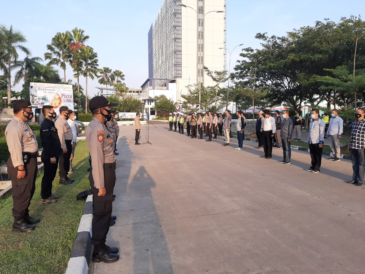 SERANG, skalainfo.net | Polda Banten dan Polres Serang gelar apel gabungan pengamanan aksi damai buruh terkait pengesahan UU Omnibuslaw Cipta Kerja, di Kawasan Modern Cikande, Rabu (07/10/2020),