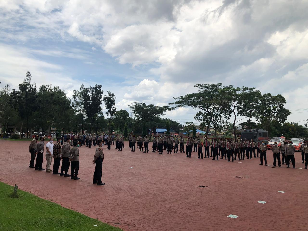 MEDAN, skalainfo.net | Personil Polda Sumatera Utara melaksanakan apel siaga di Lapangan KS Tubun Mapolda Sumut, Jumat (09/10/2020).