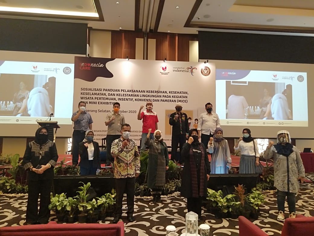 Tangerang, Skalainfo.net| Acara pemaparan dan penyuluhan penanganan covid-19, dengan menerapkan CHSE (clean health safety enviroment) yang dihadiri oleh Dinas Pariwisata Propinsi Banten dan DPD ASPPI Banten, Aspreda Banten, ASITA Banten, serta PHRI Banten, bertempat di Hotel Atria Gading Serpong Tangerang, Kamis, 08/10/2020.