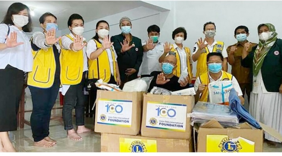 Ketua Daerah Lions Club Kwek Ling Ling, didampingi Presiden Dipo Tjia, Sau Ik / Hartono Sukiatto, Acuan CB, Poniah Chen, dr. Juli Ang, Riadi Sukatia, SH menyerahkan bantuan tersebut kepada Ketua IDI Cabang Labuhanbatu, dr. H Edyson Stephen dan anggota lainnya.