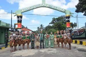 Saat memasuki Kesatrian Makodim 1707/Merauke, Brigjen TNI Bangun Nawoko menerima laporan dari Komandan Kodim (Dandim) 1707/Merauke Letkol Inf Eka Ganta Chandra, S.I.P., Plh. dengan jajar kehormatan dan disambut secara adat dengan tarian adat suku Marind dilanjutkan menuju ruang transit.