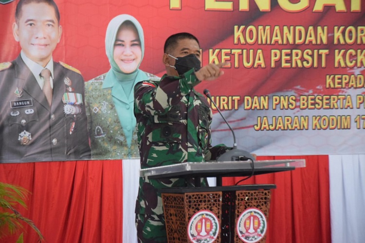 Selanjutnya Danrem 174 Merauke Brigjen TNI Bangun Nawoko memberikan pengarahan kepada Prajurit dan PNS TNI serta anggota Persit KCK Cabang XVIII Kodim 1707/Merauke di Aula Animha Makodim 1707/Merauke.