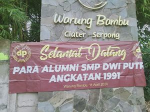 Tangsel, skalainfo.net | Alumni SMP Dwi Putra Angkatan Tahun 1990/1991 menyelenggarakan Reuni Temu Kangen, selama 30 Tahun tidak pernah berjumpa, kegiatan ini diadakan bertempat di Rumah makan Warung Bambu kampung jati Ciater Tangerang Selatan, Sabtu, ( 17/10/2020), Pukul 11 : 00 WIB.