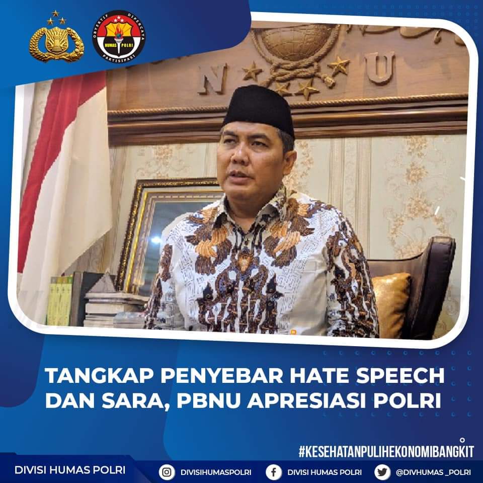 Jakarta, skalainfo.net | Pengurus Besar Nahdlatul Ulama (PBNU) mengapresiasi kesigapan Polri yang bertindak cepat menangkap GN. Diketahui, GN diduga melakukan ujaran kebencian mengandung SARA yang ditujukan kepada NU. GN sendiri berhasil diamankan oleh tim Bareskrim Polri saat berada di kediamannya di Malang, Jawa Timur, pada Sabtu (24/102020) dini hari.