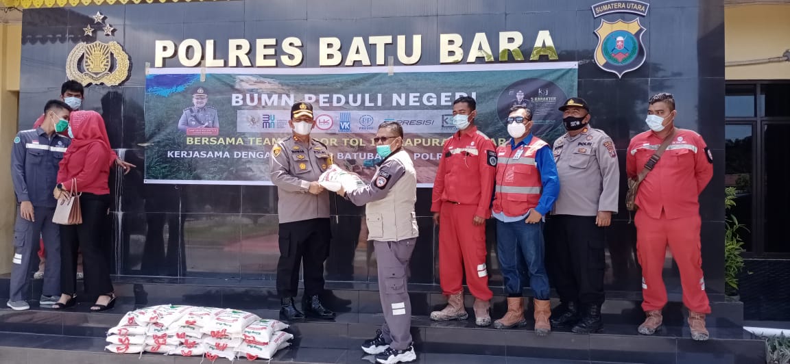 Batu Bara, skalainfo.net | Bekerja sama dengan Polres Batu Bara dan Polres Simalungun, PT PP dan PT PP Presisi bersama team vendor jalan Tol Indrapura – Kisaran, salurkan bantuan sembako 200 zak beras di Mapolres Batu Bara. Selasa, 27/10/2020.