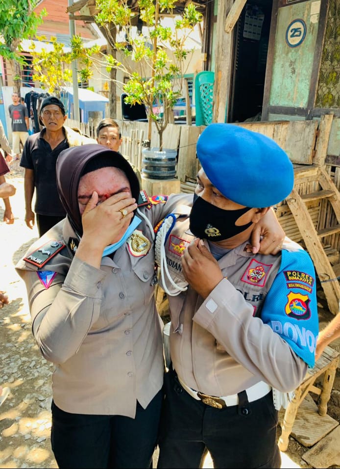 Kendati sudah diberikan pemahaman, aksi pelemparan tetap saja dilakukan, sehingga 1 orang anggota Polwan bernama AIPDA Sri Yeni dan seorang anggota Patmor Bripda M Heri Sanjaya terkena lemparan batu dan mengalami luka serius.