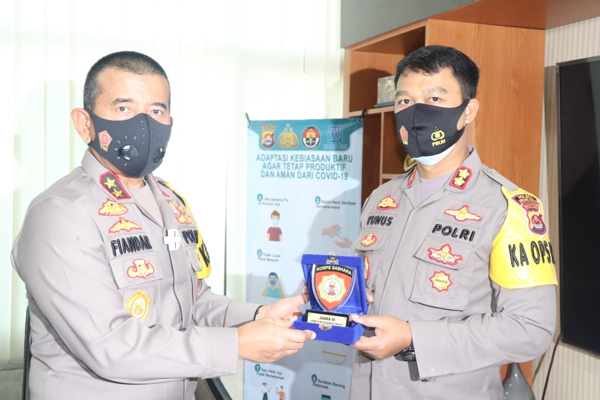 Kapolres Serang Kota AKBP Yunus Hadith Pranoto, S.IK., M.Si., menerima Plakat dan Piagam Penghargaan dari Kapolda Banten Irjen Pol Fiandar, Adapun juara kesatu diraih Polres Serang dan kedua diraih oleh Polres Cilegon,