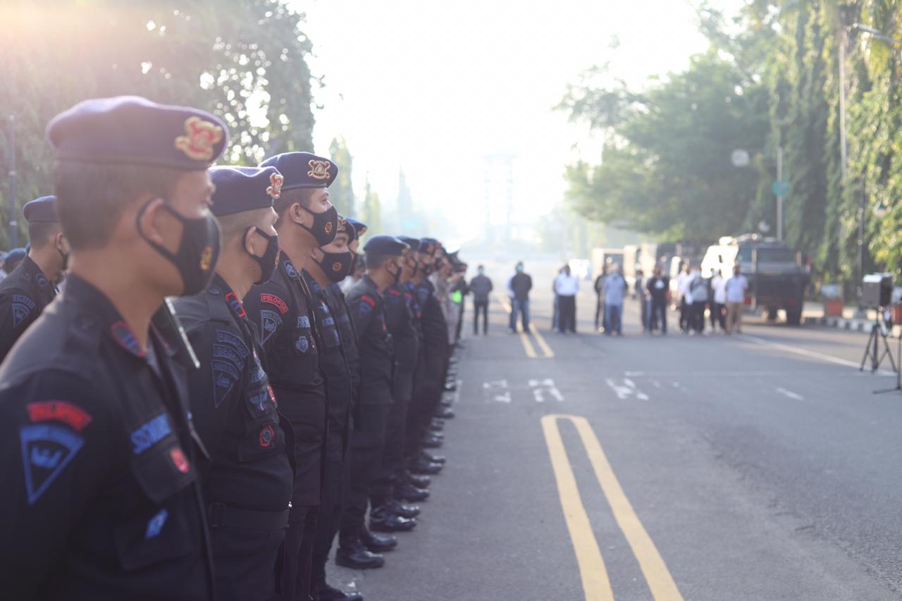 Cilegon, skalainfo.net | Dalam rangka melaksanakan Pengamanan Pengawalan Sidang Depeko Penetapan UMK Kota Cilegon Tahun 2021, Polres Cilegon melaksanakan Apel Kesiapan didepan Pemkot Cilegon, Senin, 9/11/2020.