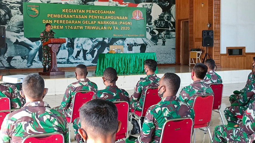 Penyuluhan P4GN tersebut bertujuan mengantisipasi penyalahgunaan Narkoba di lingkungan Prajurit Jajaran Korem Merauke. Kegiatan ini dipimpin langsung oleh Kepala Seksi (Kasi) Intelijen Korem 174 Merauke Kolonel Inf Enjang, S.I.P. bersama tim sosialisasi yaitu dr. Michael Timothy Kaban dari Denkesyah 17.04.04/Merauke.