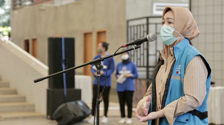 “Semuanya berkat bapak dan ibu,” kata Airin di seluruh hadapan peserta reuni eks pasien rumah lawan covid.