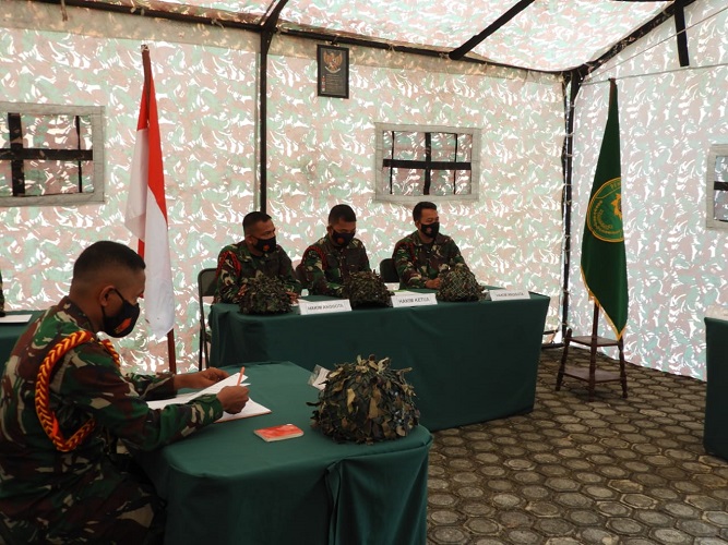 “Sebrutal apapun pertempuran, tetap masih ada hukum yang mengatur. Demikian pula terhadap prajurit yang melakukan pelanggaran. Dalam Latihan Antar Kecabangan ini dilaksanakan simulasi sidang pengadilan militer pertempuran yang memeriksa dan mengadili perkara pidana pada tingkat pertama dan terakhir saat terjadi pertempuran dengan kasus yang diangkat adanya prajurit yang lari dalam pertempuran,” jelas Komandan Tim Hukum Kapten Chk Slamet Purwowidodo, S.H., M.H. yang bertindak sebagai Hakim Ketua.