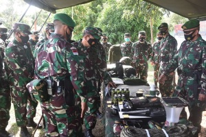 Dalam pengecekan tersebut, Kasum TNI didampingi oleh Kapuskes TNI, Staf Ahli Panglima TNI, Kapusbintal TNI, Kababek TNI, Waasops Panglima TNI, Waaskomlek TNI, Waasops Kasad, Kasdam XVI PTM. (Red/Ahmad).