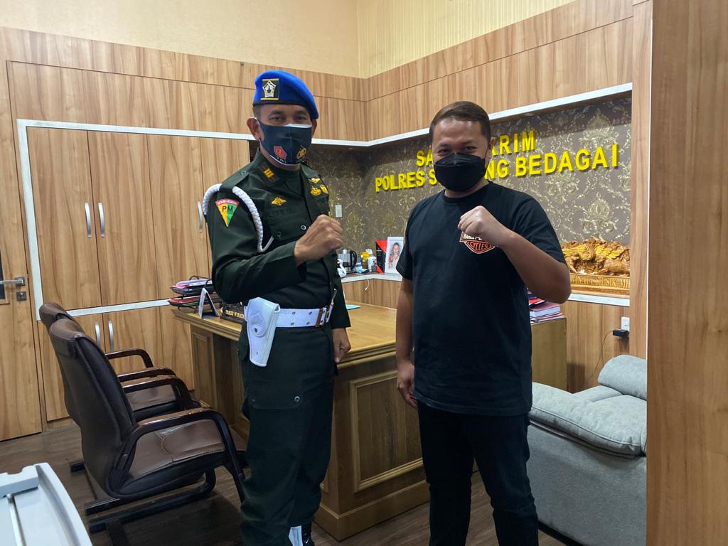 TNI AD, Kapten CPM Sukarman Situngkir dalam kunjungannya menyampaikan ucapan terima kasih atas sambutan di Mapolres Serdang Bedagai terutama kepada Kasat Reskrim dalam hal peningkatan koordinasi dan Sinergitas antara TNI- POLRI. (Why/red),