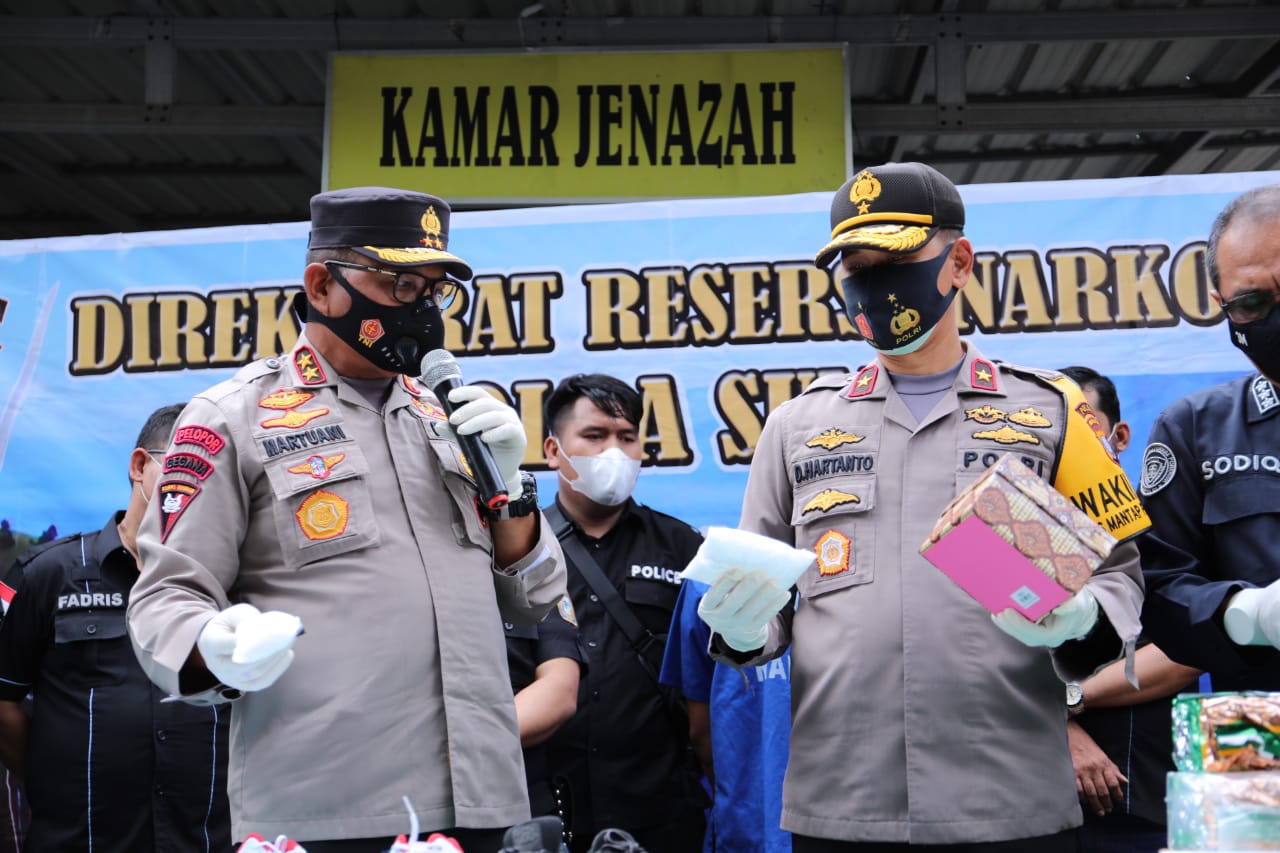 Medan, skalainfo.net | Kapolda Sumut Irjen Pol. Drs. Martuani Sormin M. Si pimpin konferensi pers pengungkapan tindak pidana narkotika seberat 16 kg oleh Ditresnarkoba Polda Sumut bertempat di depan Kamar jenazah RS. Bhayangkara TK ll Medan. Kamis ( 17/12/20),