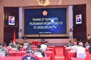 Hal tersebut disampikan Panglima TNI Marsekal TNI Hadi Tjahjanto, S.I.P., saat membuka acara Training Of Trainer (TOT) pelaksanaan Vaksinasi Covid-19 di lingkungan TNI, bertempat di Aula Gatot Soebroto Mabes TNI, Cilangkap, Jakarta Timur, Kamis, 17/12/2020.