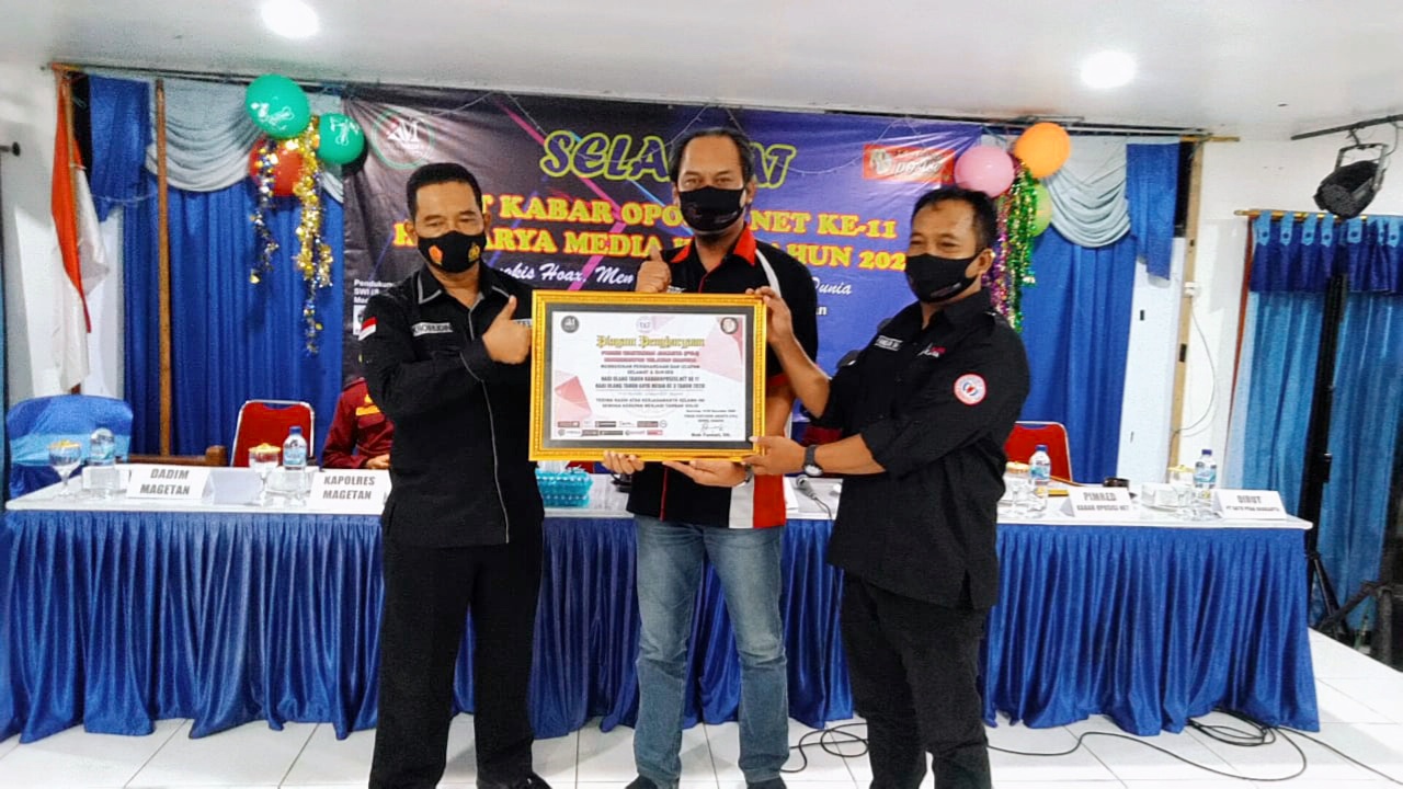 MAGETAN, skalainfo.net | Bingkai khusus ini bukanlah bingkai yang terbuat dari berlian maupun emas. Akan tetapi bingkai ini diukir dengan goresan penuh makna. Ungkapan tersebut terlontar dari seorang pujangga asal khas carok yang juga sebagai ketua Tim 16 Sumenep sekaligus Ketua Kordinator Wilayah Forum Wartawan Jakarta (FWJ) Madura pada kesempatan menghadiri peringatan ke 11 media Kabar Oposisi, dan media Arya di Hotel Nusa Indah Sarangan Magetan, Minggu (20/12/2020).